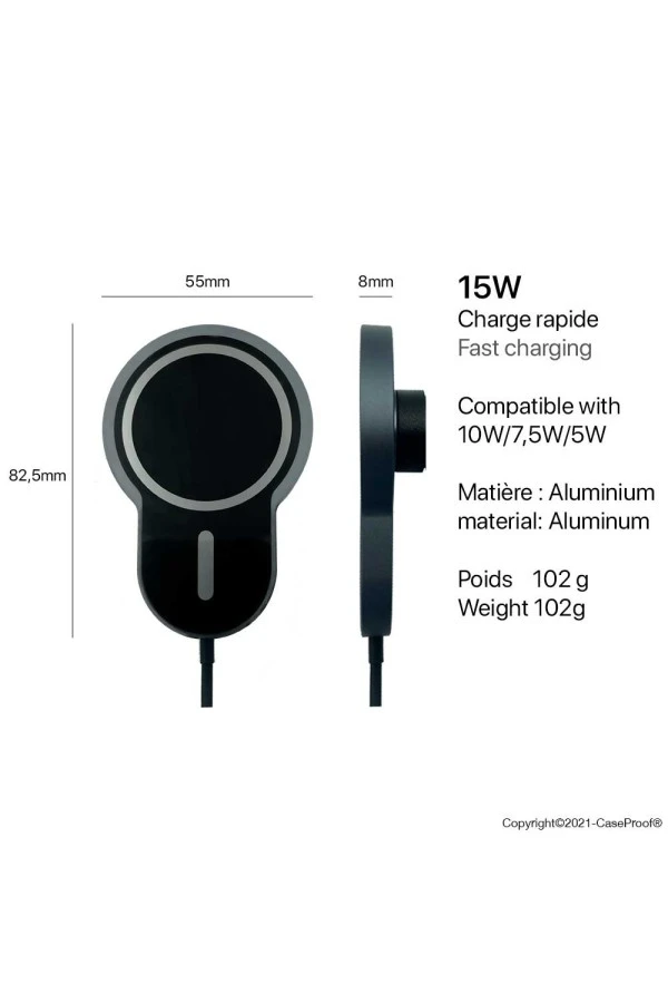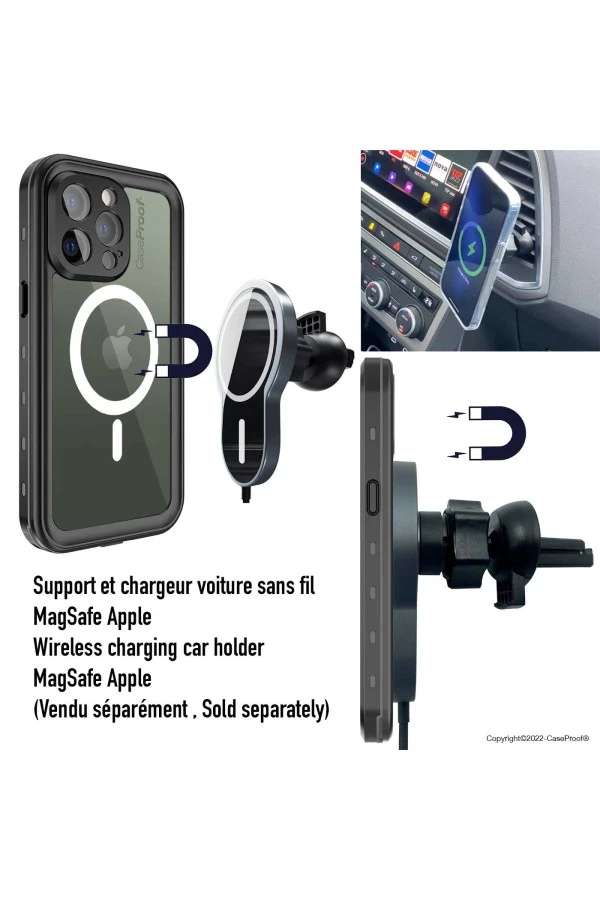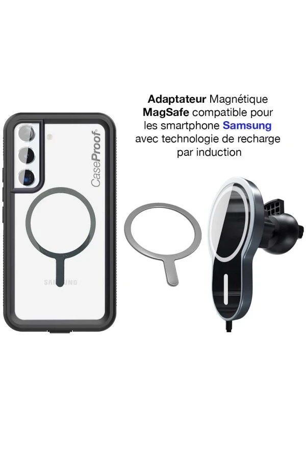 Permettant de rendre compatible MagSafe tous les iPhones à partir de l’iPhone 8, et permet d’utiliser le system MagSafe avec votre coque de protection Waterproof ou Antichoc